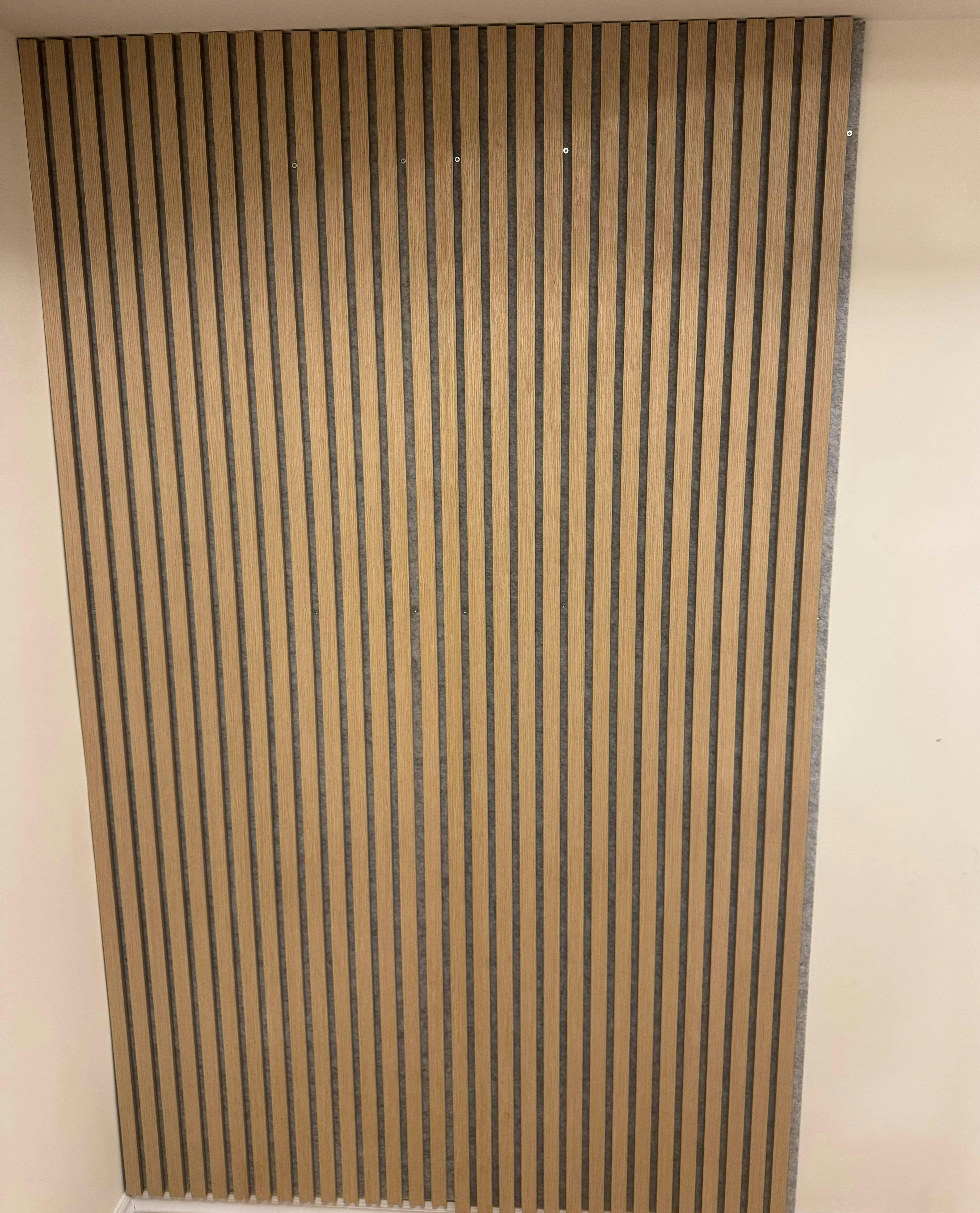 The Natural American Oak acoustic wall panels completely transformed the roastery space at Found Coffee adding warmth, texture, and a modern upscale feel. Not only did they elevate the visual appeal, but the improved acoustics created a calmer, more enjoyable environment for customers to relax and connect.