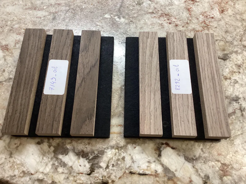 Add Warmth & Modern Texture with Smoked Walnut Acoustic Slat Wood Veneer Wall Panels. Create a space that feels both stylish and serene with the rich, smoky tones of our Smoked Walnut Acoustic Slat Wood Veneer Wall Panels. Designed to elevate interiors with high-end aesthetics and functional sound absorption, these panels turn any wall or ceiling into a modern design feature. With simple installation and refined finishes, achieving a luxurious look has never been easier.